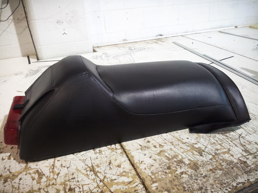 We use high end marine vinyls for seats/panels, rubberized backed carpet for flooring, treated plywood for seat bases, and high grade foam.