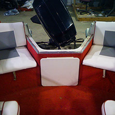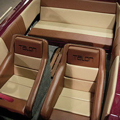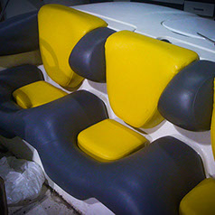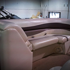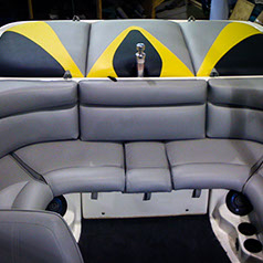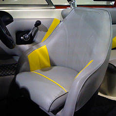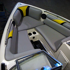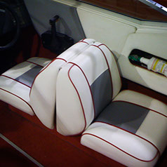 We use high end marine vinyls for seats/panels, rubberized backed carpet for flooring, treated plywood for seat bases, and high grade foam.